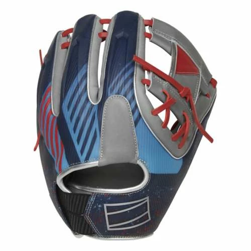 In addition, we’ve crafted our REV1X series gloves with a multi-layer back too. Each model even has its own molded, 3D-sublimated design. The 11.5-inch REV1X glove is equipped with a stylish gray, red & blue color-way with an extremely eye-catching sublimated graphic that is sure to turn heads on the field. The revolutionary lace-less I-web and heel will also help you stand out. This innovative new feature allows you to have a completely consistent feel, to make sure you’re snagging everything hit your way. And with the ultra-premium ‘HOH’ leather in all the right places, these REV1X gloves boast the same professional quality break-in & performance you expect from Rawlings.